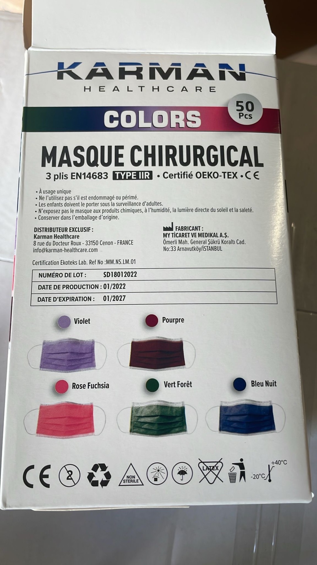 Masque 3 plis EN 14683 type IIR certifié Oeko- tex